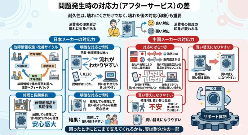 耐久性は、壊れにくさだけではありません。壊れたあとにどう対応してくれるかも大切です。消費者から見ると、故障そのものだけでなく、そのあとの対応で印象が大きく変わります。