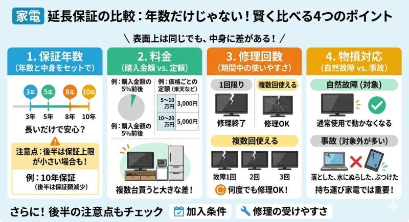 家電 延長保証を比べるときのポイント