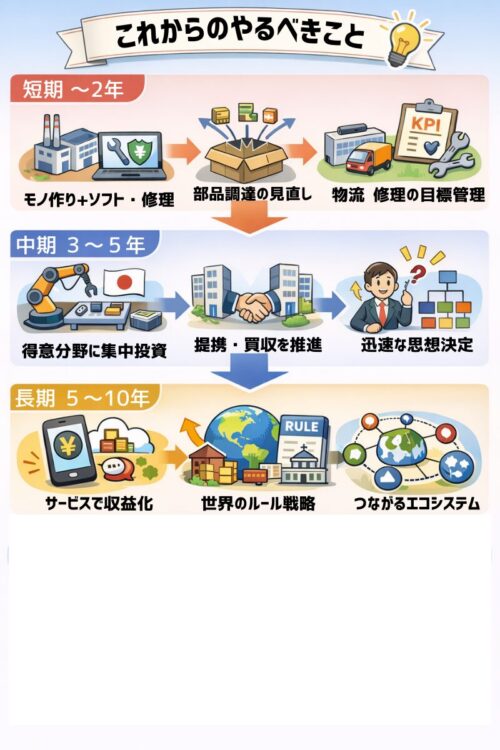 - 「モノを作る」だけでなく、ソフト更新・保証・修理までまとめて設計する