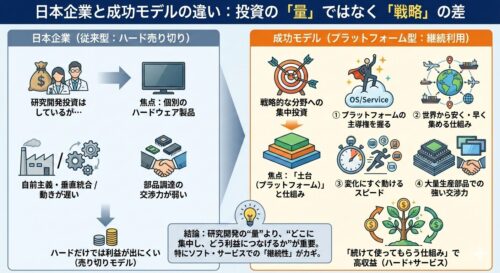 - 日本の得意分野(作り込みで差が出る領域)に投資を集中する