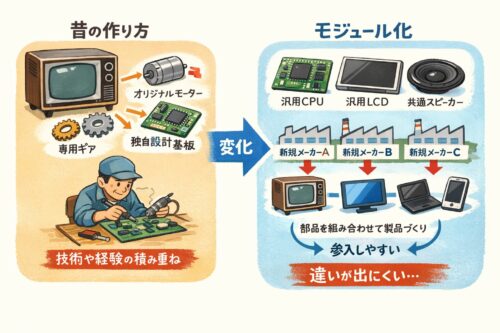 - 家電が「部品を組み合わせれば作れる」タイプになった(モジュール化)
